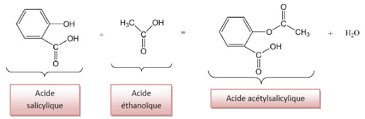 réaction de synthèse de l’acide acétylsalicylique :